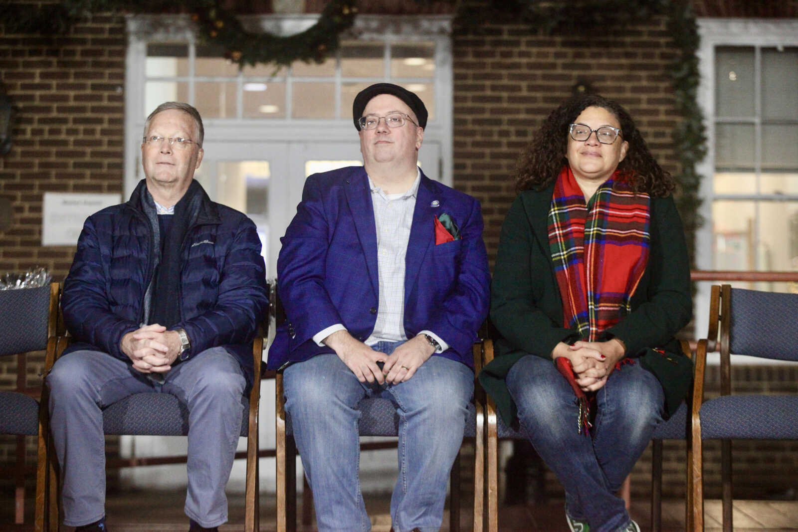 (Left to right) City Manager Jim Parajon with City Council Members R. Kirk McPike and Jacinta Greene at the Alexandria Christmas tree lighting at Market Square, Nov. 22, 2025 (staff photo by James Cullum)