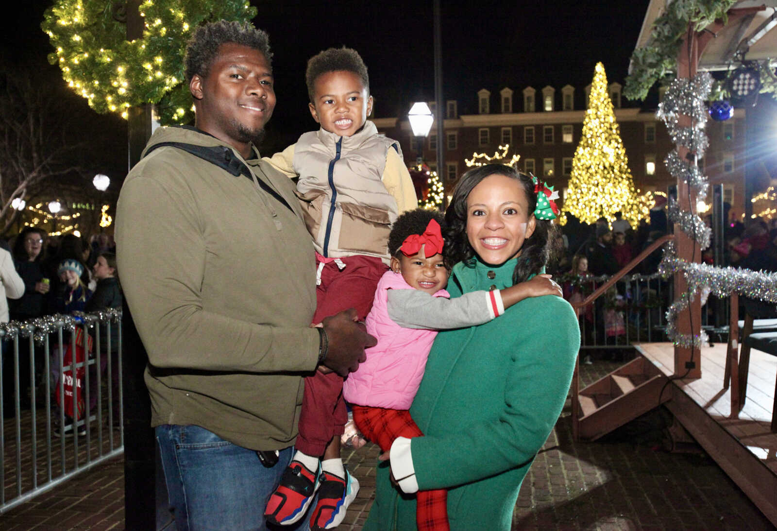Mayor Alyia Gaskins and her family at the Alexandria Christmas tree lighting at Market Square, Nov. 22, 2025 (staff photo by James Cullum)