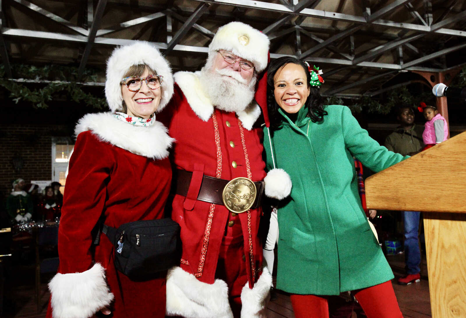 Mayor Alyia Gaskins announced the magical arrival of Santa and Mrs. Claus, who got into town on a Christmas-themed King Street Trolley. They helped city leaders count down the lighting of the 40-foot-tall plastic tree, which is adorned with some 38,000 lights.