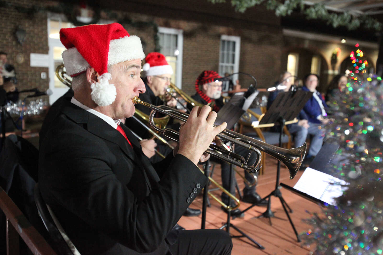 Steffenworx Brass performs at the Alexandria Christmas tree lighting at Market Square, Nov. 22, 2025 (staff photo by James Cullum)