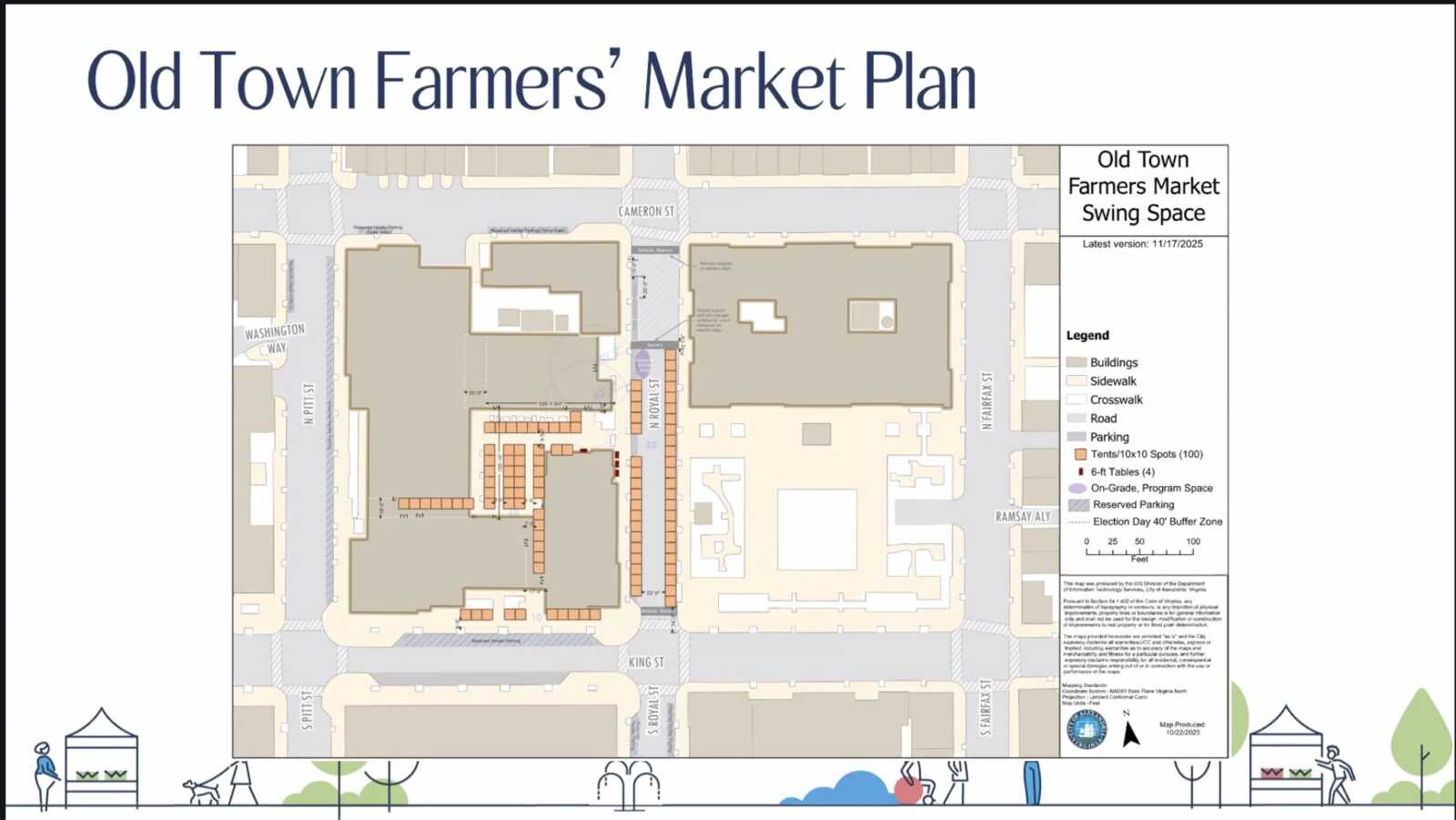 Sidewalk and street parking closures are expected around the site’s perimeter at N. Fairfax, N. Royal and Cameron streets.