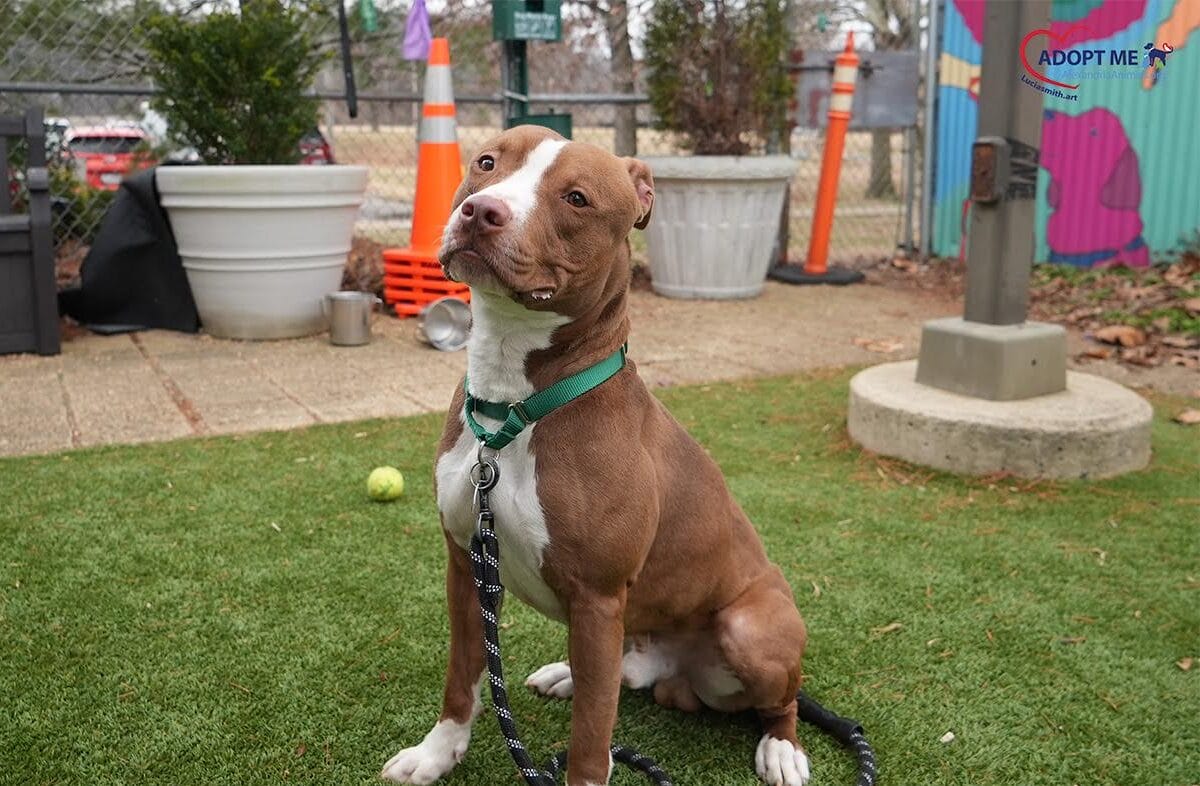 Meet Inu, a happy pup at the Animal Welfare League of Alexandria who loves tug-of-war, hiking and long walks.