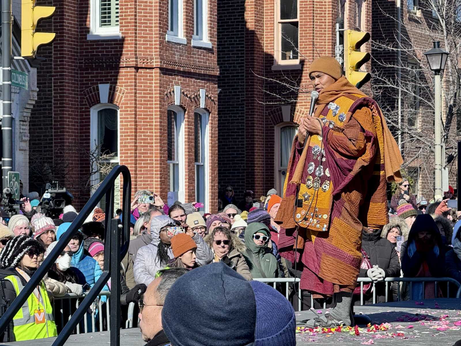 Joined onstage by city officials, the group’s leader, the Venerable Bhikkhu Pannakara, gave an address outside Christ Church, touching on themes of mindfulness and reflection in today’s heavily digital — and often divided — world.