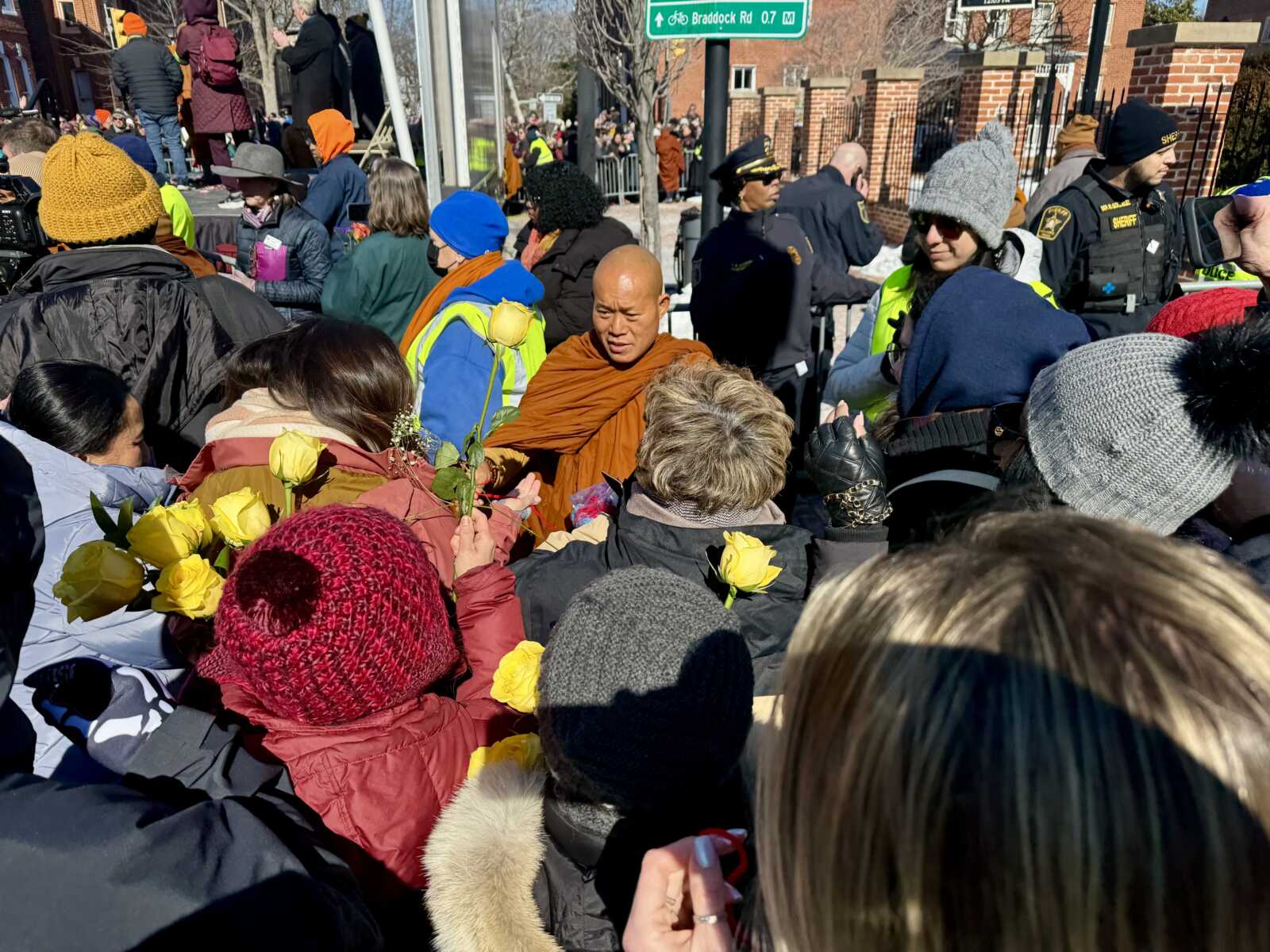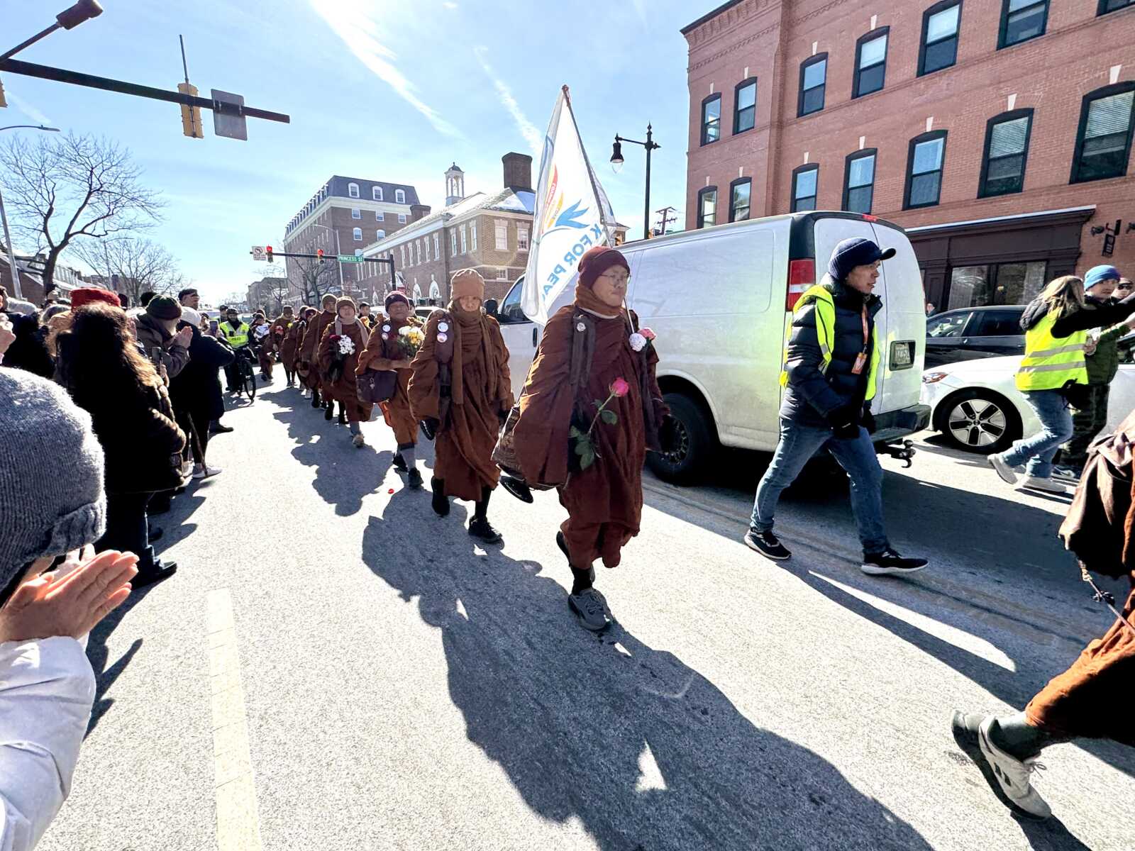 As members of the crowd flocked to N. Washington Street to offer cheers and flowers to the departing monks, one onlooker told ALXnow their main takeaway was that “we can choose to live in peace.”