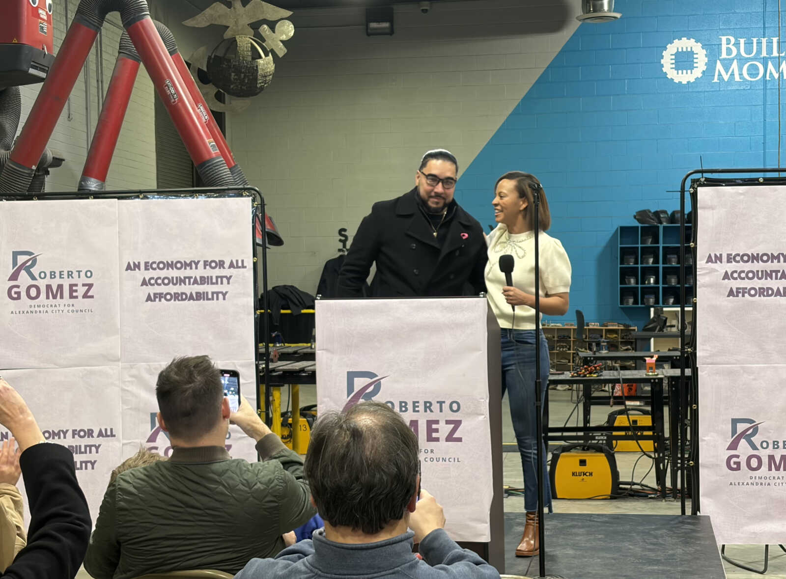 Mayor Alyia Gaksins endorsed Alexandria City Council candidate Roberto Gomez at his campaign kickoff in Landmark yesterday (Sunday).