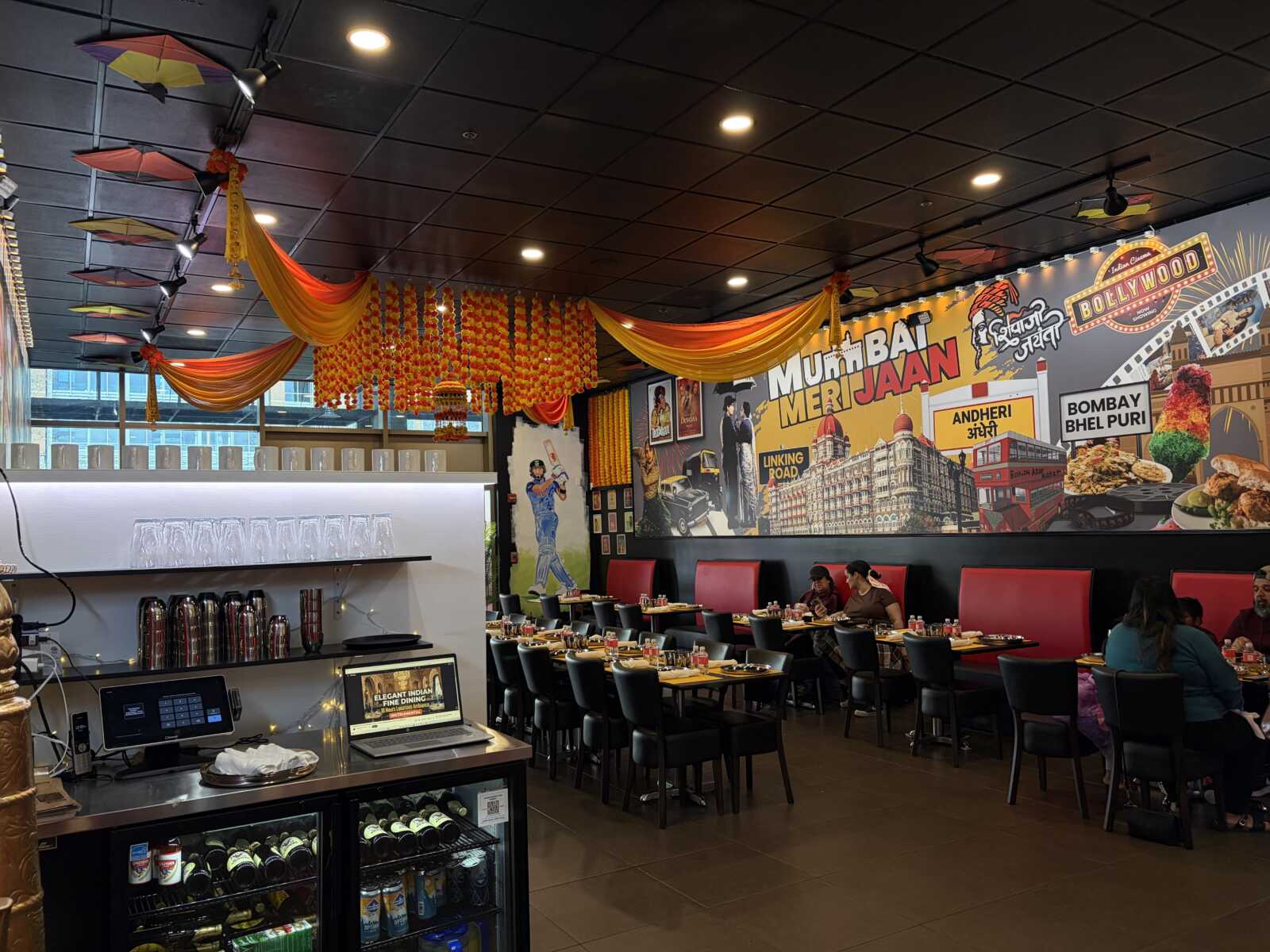 “The interior is all about the landmarks of Bombay, the older classical movies,” Sheikh, who grew up on Mumbai’s Linking Road corridor, said. “Bollywood is big about movies. The colors reflect the curry dishes that we have. So red, orange, burgundy — that’s our dishes.”