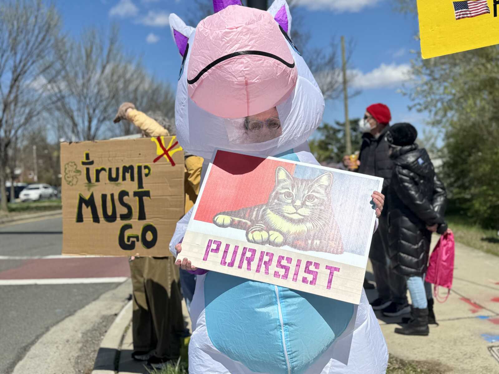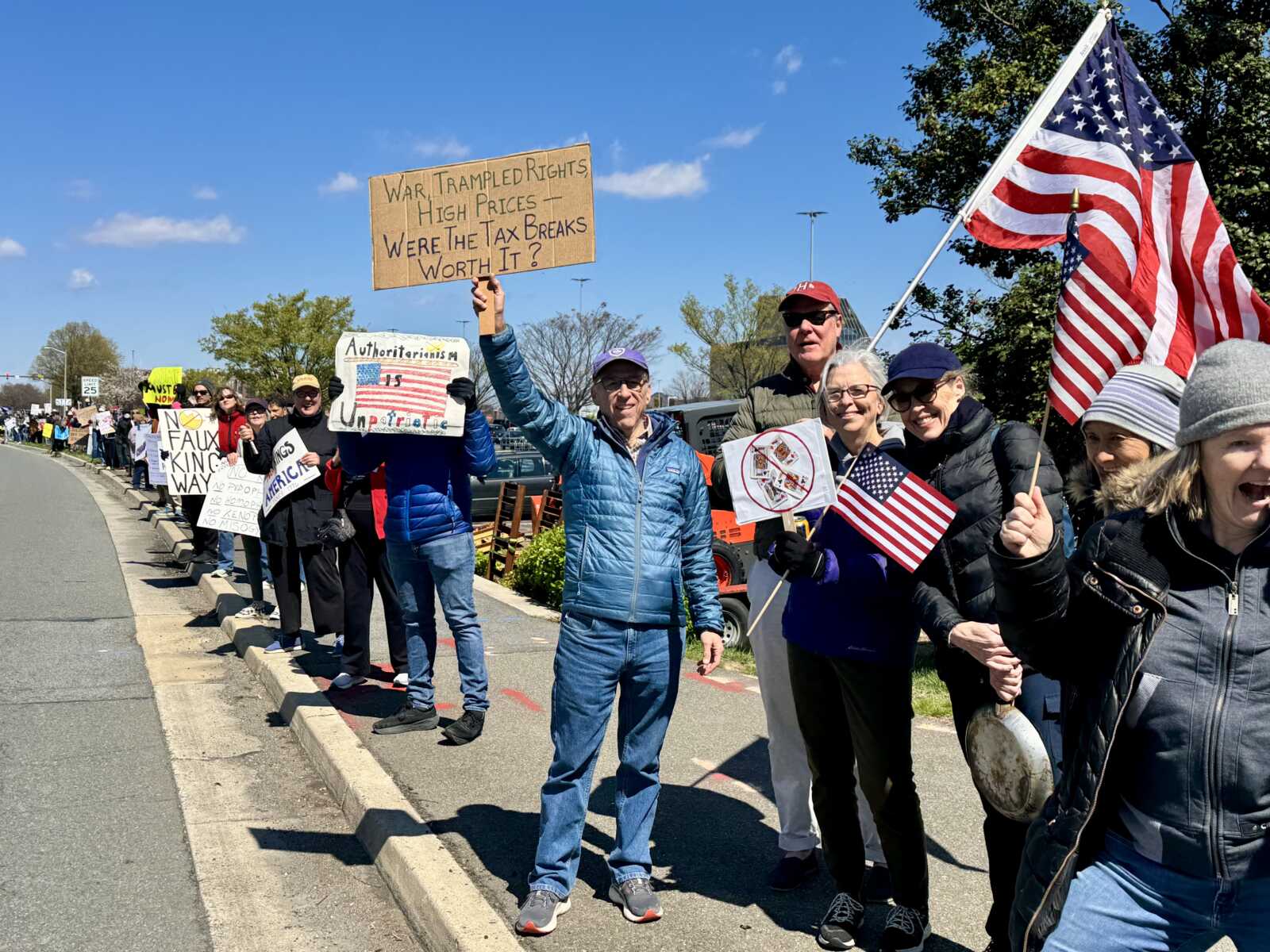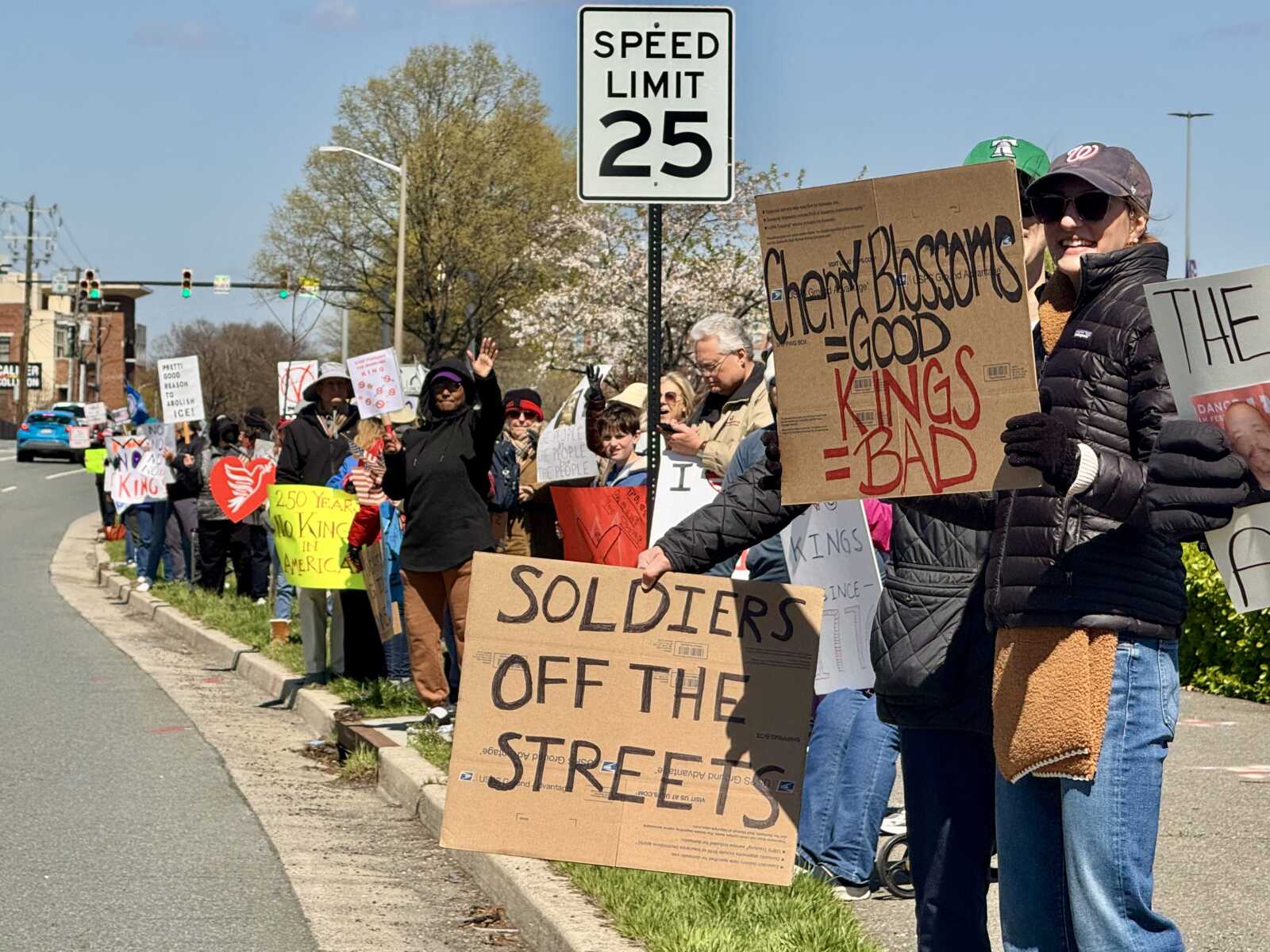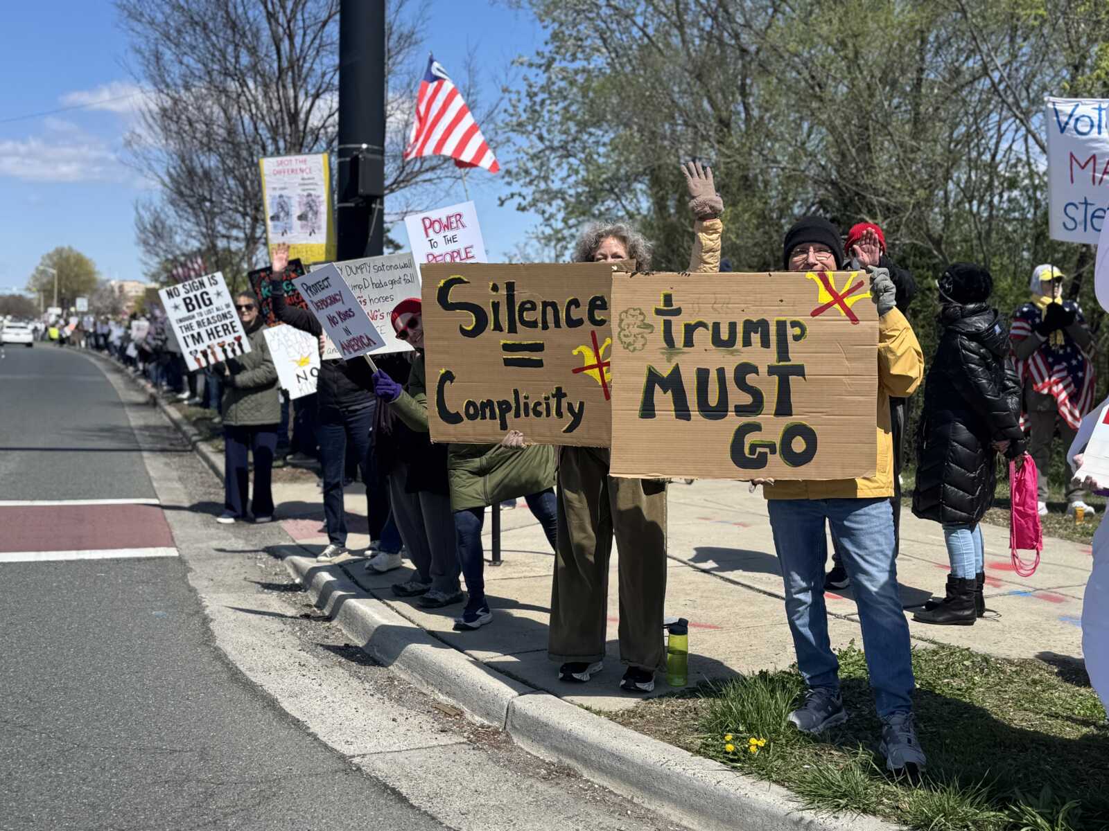 Hundreds of people holding political signs lined Richmond Highway in Alexandria to protest the Trump administration today (Saturday).
