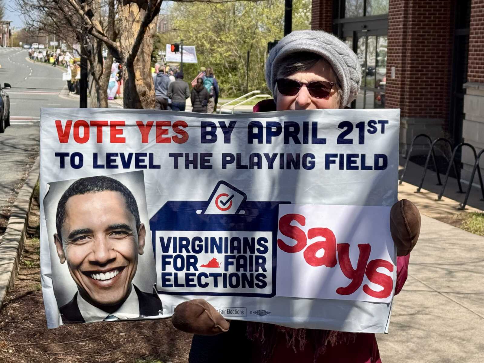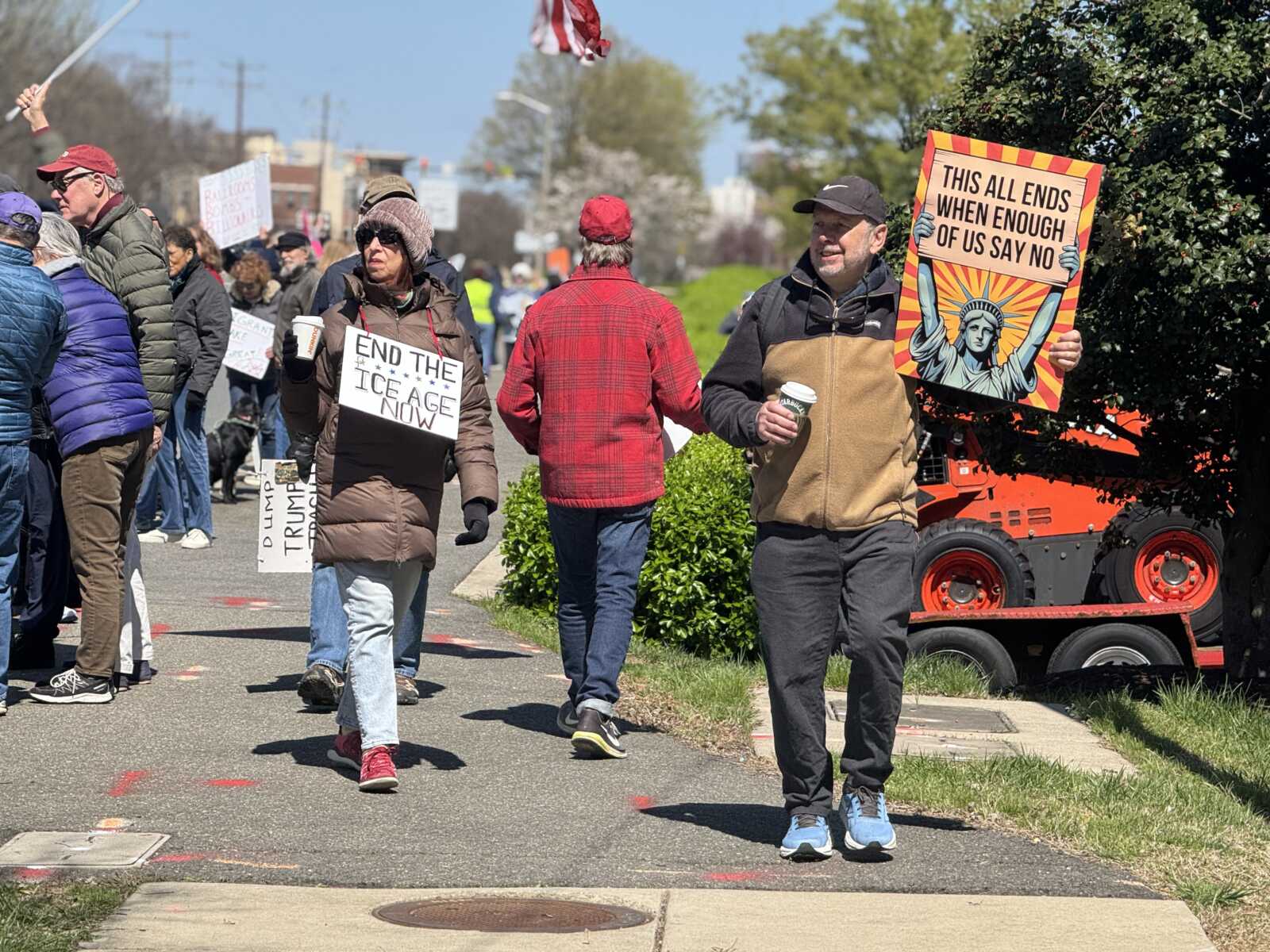 “I’m very concerned that we’re sliding into authoritarianism,” retired attorney John Ordway said outside the Potomac Yard Shopping Center. “Specifically, I’m worried about the rule of law.”