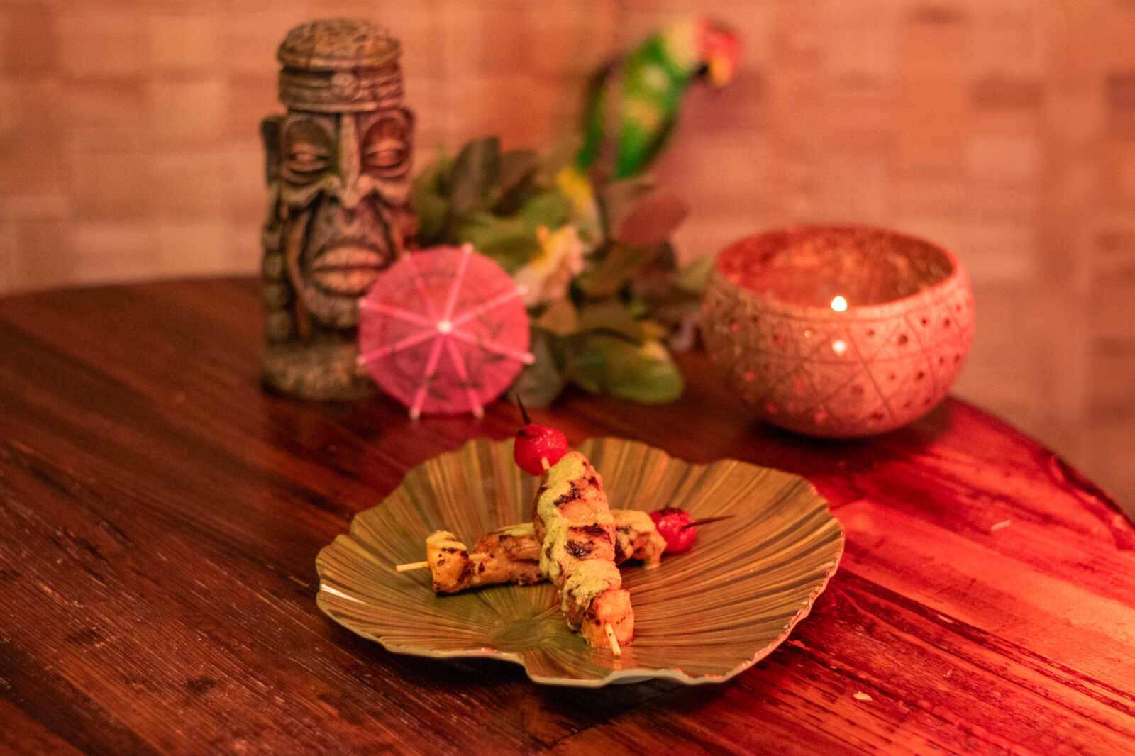 Island-inspired bites include charred pineapple BBQ spare ribs, huli huli chicken skewers, coconut shrimp, char siu pork egg rolls, sweet soy chicken wings and crispy fish lettuce wraps.