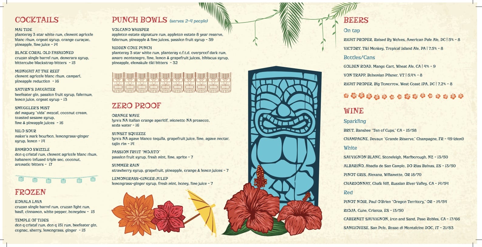 Hi-Tide Lounge Tiki Pop-Up drink menu (via Alexandria Restaurant Partners)