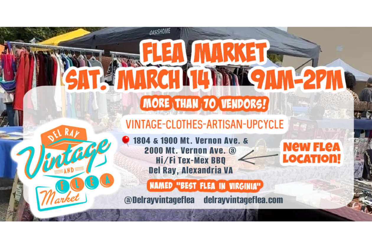 Join us for the March Del Ray Vintage & Flea Market—packed with 70+ curated vendors, one-of-a-kind finds, upcycled goods, and all the spring thrifting joy you could ask for.