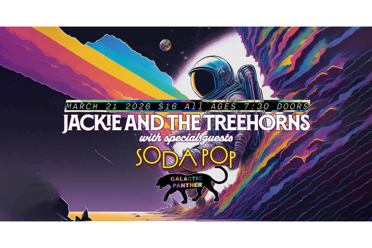 Welcome to the Galactic Panther Art Gallery for an unforgettable night of LIVE MUSIC featuring Jackie and The Treehorns with special guests Soda Pop! Get ready to groove on March 21, 2026 at 7:00 PM (Eastern Time). Join us for a night filled with amazing tunes and great vibes. Don’t miss out on this opportunity to enjoy live music in a unique setting. See you there!