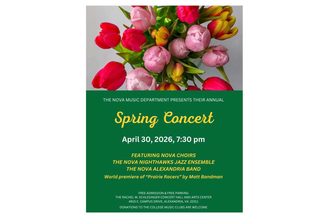 Join the NOVA Choirs, Nighthawks Jazz Ensemble, and the NOVA Alexandria Band for a night of lively music and camaraderie. You don’t have to be a student or know a student to enjoy this free community event!