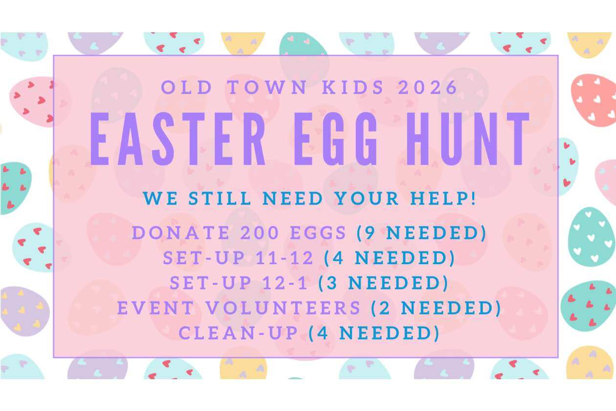 We will have Easter egg hunts grouped by age for all children age 0 through 6th grade.